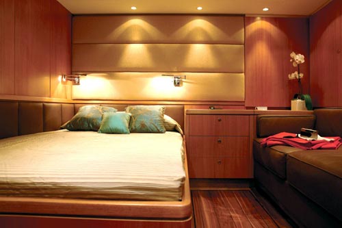 Sat TV, DVD, CD stereo surround system in salon, master cabin and guest cabins. 5,50 m Castoldi jet inflatable Rib with Yanmar engine 125 HP, 3.80m Zodiac with 15 HP Yamaha outboard, water ski, wake board and snorkeling and fishing equipment. |
