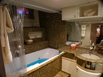 All suites are equipped with audio & video entertainment system, mini-bar, air-conditioning and en-suite batrooms fitted with exquisite granite. Salon TV - DVD player, Salon Stereo, Board games, Sun Awning, Deck Shower, Deck jacuzzi, water sports |