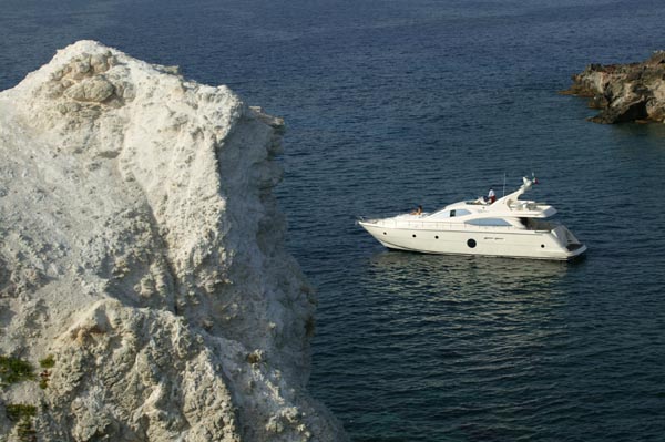A wide curved door in steel and mirror glass welcomes guests to the elegant, split-level main saloon and dining areas on the main deck.. a C-shaped sofa and table accommodates in comfort 6 guests in the saloon, while another sofa and a foldaway table can be found in the separate dining area.