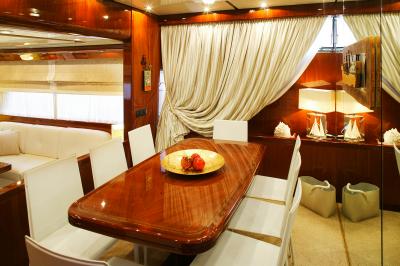 Passion is a great 72ft motor yacht that has cruising speed of 23 knots. It accommodates 8 guest in 4 luxurious cabins. These cabins in one master cabin, 1 VIP cabin, and two twin cabins all with en suite facilities. There is a LCD 26” TV set, DVD player, and CD player in the Master cabin, in the VIP cabin there is a LCD 20” TV, DVD player, and CD player, and in the twin cabins LCD 20” TV with DVD player and CD player. For sports and leisure activities this yacht offers one 4,20m dinghy Yamaha with 50hp outboard, swimming platform, water-skis, and fishing and snorkeling equipment. She is staffed by a crew of 3. |